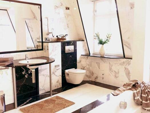 Diese einzigartige und moderne Wohnung befindet sich in einer architektonisch stilvollen Stadtvilla in erster Reihe zum Jungfernsee. Über den hübsch angelegten Vorgarten gelangen Sie in das Treppenha...