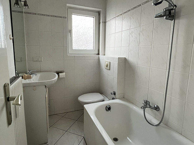 Großzügige 4-Zimmer-Wohnung mit 2 Balkonen im 1. Obergeschoss und Dachgeschoss eines Mehrfamilienhauses. Die Wohnung hat 3 Schlafzimmer, ein Wannenbad mit Fenster, ein innen liegendes Duschbad sowie eine separate Küche (ohne Einbauküche). Sie ist ausgestattet mit grauen PVC Bodenfliesen. ACHTUNG!!! Zur angegebenen Miete in Höhe von monatlich € 909,28 (Kaltmiete + BEKO-Vorauszahlung) kommen noch die Heizkosten sowie Strom hinzu. Diese werden direkt mit den Anbietern abgerechnet.