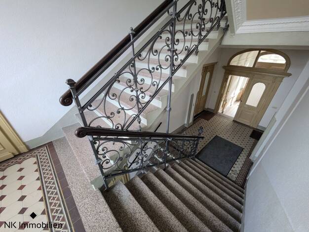 Das denkmalgeschützte Mehrfamilienhaus besticht durch seine kunstvoll gestaltete Fassade. Die Wohnung befindet sich im Dachgeschoss und kann bequem mit dem Fahrstuhl erreicht werden. Folgende Ausstattung erwartet Sie: - in der unteren Ebene geräumige große Küche mit großzügigem Essbereich für gemütliche Abende - Bad und WC getrennt, Bad mit Fenster, Badewanne, Dusche und Waschmaschinenanschluss - Wendeltreppe im Flur zur oberen Ebene mit gemütlichen Dachschrägen - großes Wohnzimmer mit Balken -...