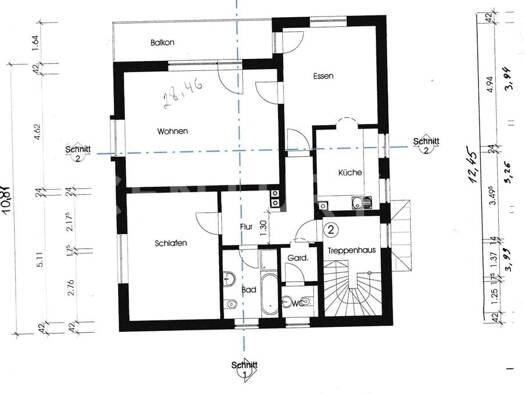 Beim Betreten der Dachgeschosswohnung gelangen Sie zunächst in den zentralen Flur, von dem aus alle Bereiche erschlossen werden. Direkt auf der linken Seite befindet sich das helle Tageslichtbad mit Dusche. Rechts vom Flur öffnet sich das großzügige Wohnzimmer mit Echtholzboden, der dem Raum eine warme und einladende Ausstrahlung verleiht. Vom Wohnzimmer aus gelangen Sie in das angrenzende gemütliche Schlafzimmer. Geradeaus vom Flur erreichen Sie den Koch- und Essbereich. Ausgestattet mit einer...