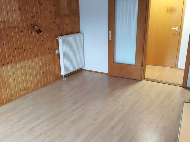 Diese gemütliche 3-Zimmer-Wohnung bietet ein Schlafzimmer, ein Durchgangszimmer, das sich ideal als Esszimmer eignet, sowie ein großzügiges Wohnzimmer mit Kamin. Der ca. 10 m² große Balkon mit Bergblick lädt zum Entspannen ein. Die Küche ist ohne Einbauküche und kann nach eigenen Wünschen gestaltet werden. Ein Badezimmer mit Fenster, Badewanne und WC sowie ein separates Gäste-WC sorgen für zusätzlichen Komfort. Zwei Außenstellplätze sind ebenfalls vorhanden.