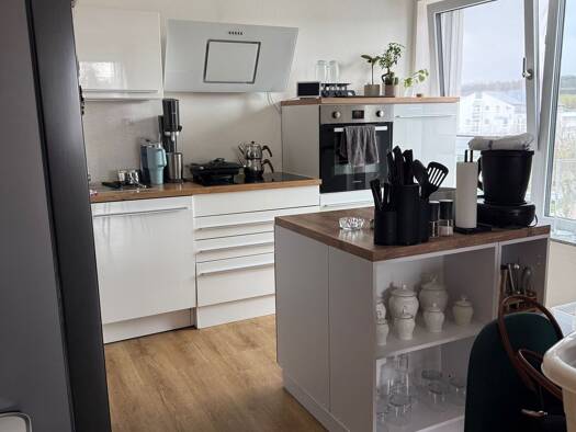 Objektbeschreibung: Hier erwartet Sie ein gepflegtes, liebevoll möbliertes 1 Zimmer-Appartement im Dachgeschoss eines schönen Wohnhauses, in einer Sackgasse gelegen, zum ruhigen und entspannten Wohnen. Die helle, einladende Wohnung ist durch einen Raumteiler in einen Essbereich mit Küche und einen Wohnbereich mit einem Bett, einem gemütlichen Sofa und einem Sekretär, der als Arbeitsplatz dient, aufgeteilt. Des Weiteren hat die Wohnung ein ansprechendes Badezimmer zu bieten. Es ist mit Tageslich...