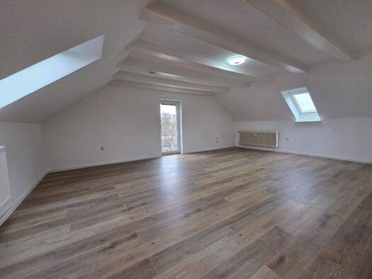 Komplett saniertes, sehr stylisches Dachstudio, Erstbezug! Richten Sie Ihre neue Wohnung nach Ihrem Geschmack ein! Es stehen ca. 61 m² Wohnfläche zur Verfügung. Aber aufgrund der Dachschrägen haben Sie in Wirklichkeit ca. 100 m² Grundfläche zur Verfügung. Das bedeutet viel Platz und Raum für Ihre Lounge mit großer, bequemer Wohnzimmercouch, Ihre Home-Office-Ecke mit großem Schreibtisch sowie Ihren großen Esstisch als Mittelpunkt der modernen Wohnung. Auf den Punkt gebracht: Unterm Dach wohnen m...
