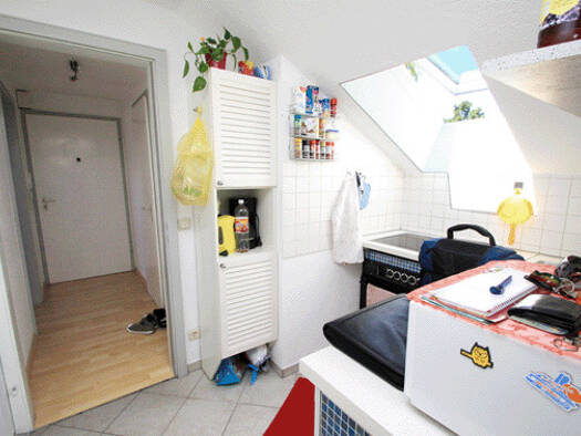 Die ruhig gelegene, sonnige 1,5 Zimmerwohnung befindet sich im Dachgeschoß in einem 1 Familienhaus. Die Einbauküche ist modern und funktionell ausgestattet. Die Einbaugeräte sind zur Ablöse. Wohnzimm...