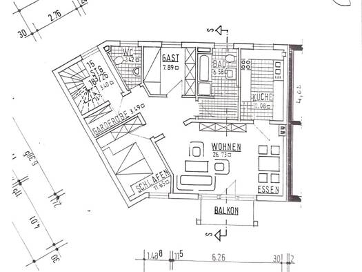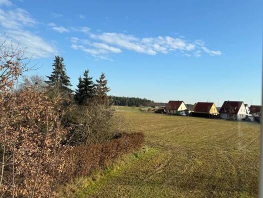 Helle, offen gestaltete 2-Zimmer-Maisonettewohnung mit zwei Süd-Balkonen. Im Süden schließen sich Felder an, im Norden liegen die Städte Stein und Nürnberg. Die erste Etage besteht aus einem Wohn-Ess...