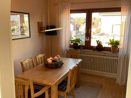 Objektbeschreibung Diese im Jahr 2016 sanierte Wohnung befindet sich im Dachgeschoss eines Zweiparteienhauses in einer ruhigen Stichstraße von Heßdorf. Diele, Wohn-und Schlafräume wurden mit Laminatb...