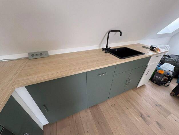 Die ruhig gelegene, sonnige 1,5 Zimmerwohnung befindet sich im Dachgeschoß in einem 1 Familienhaus. Die Einbauküche ist modern und funktionell ausgestattet. Die Einbaugeräte sind zur Ablöse. Wohnzimm...