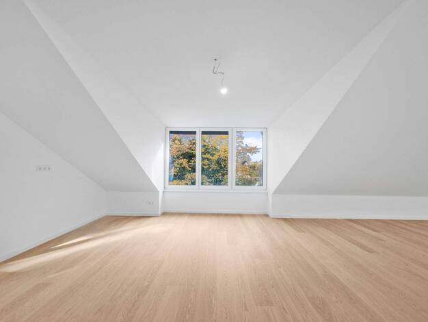 Die großzügige und sehr helle Wohnung befindet sich in einem Dreifamilienhaus und verläuft über das gesamte Dachgeschoß. Das Wohnhaus (Baujahr 1972) wurde im Jahr 2014 mit Vollwärmeschutz und einer n...