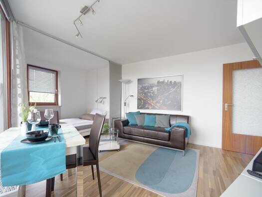 - Modern, high-quality furniture - incl. internet flat rate - small double bed 140×200 cm - flat screen TV, stereo system with DVD/CD/radio - washer-dryer in the apartment - dish-washer - built-in cl...