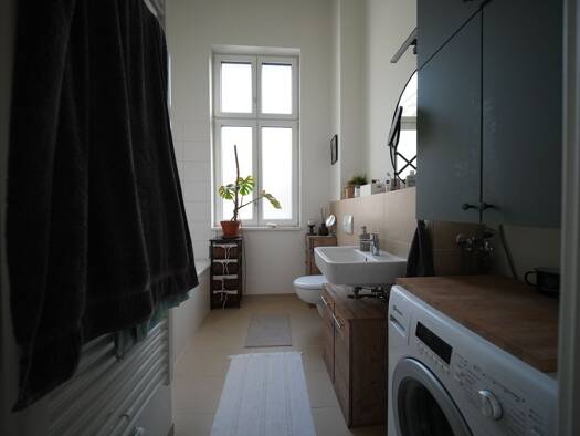 Das Wohn- und Geschäftshaus ist ein sanierter Altbau, bestehend aus Vorderhaus, zwei Seitenflügeln und einem Quergebäude. Die Wohnung befindet sich im Dachgeschoss vom Vorderhaus. Der Aufzug hält nur...