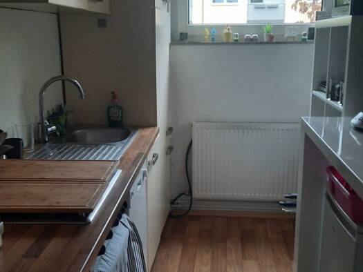 Gemütliche 2,5-Zimmer-Dachgeschosswohnung ohne Balkon in einem Haus mit nur 3 Parteien. Das innen liegende Duschbad wurde bereits modernisiert, die Küche hat einen hellen Küchenfliesenspiegel und Pla...