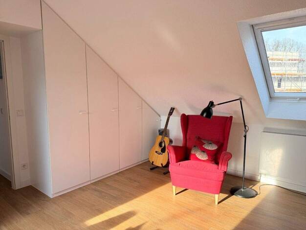Diese außergewöhnlich schöne und lichtdurchflutete Dachgeschosswohnung vermittelt ein Wohngefühl, das eher an ein eigenständiges Haus als an eine klassische Wohnung erinnert. Der eigene Hauseingang s...