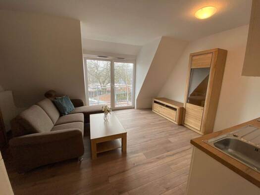 Sie finden diese charmante Dachgeschosswohnung in einem gepflegten Mehrfamilienhaus. Nach dem Betreten des Eingangsbereichs erreichen Sie einen großzügigen Flur, der eine Pantryküche beherbergt. Das ...