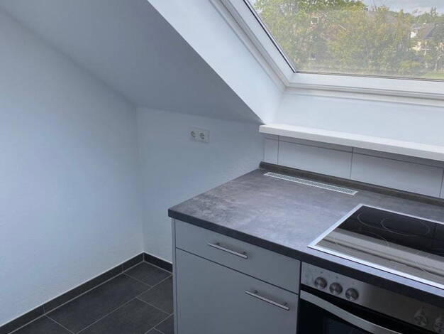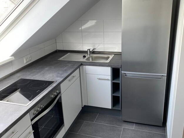 Es handelt sich um eine Dachgeschosswohnung in einem Mehrfamilienhaus mit acht Wohneinheiten. Die 2-Zimmer Wohnung befindet sich in ruhiger Lage. Die Wohneinheit wurde vor wenigen Jahren saniert und bietet ein helles und geräumiges Wohnzimmer, ein Schlafzimmer und ein Tageslichtbad. Eine moderne Einbauküche rundet das Angebot ab. (siehe Grundriss; rechte Wohnung)