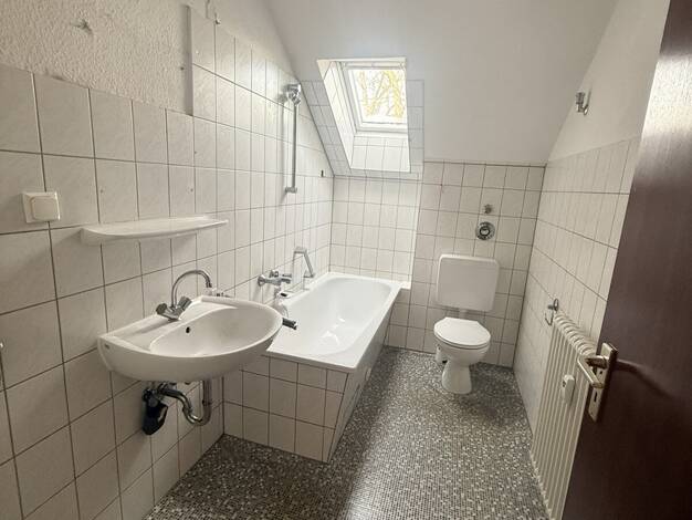 Hier wartet eine schöne helle Dachgeschosswohnung mit großem Wohnzimmer auf Sie. Ein besonderes Highlight: Das Haus liegt in zweiter Reihe und nicht direkt an der Straße. Sehr gepflegtes Mehrfamilienhaus in ruhiger Nachbarschaft. Das Haus wurde bereits 2024/2025 modernisiert. Der Multimediaanschluss wird über den Anbieter Marienfeld Multimedia GmbH / Vodafone gestellt und ist in den Nebenkosten bereits enthalten. Die Wohnung wird per Fernwärme beheizt. Die Warmwasseraufbereitung erfolgt über ei...