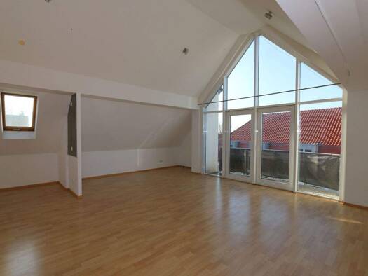 Diese gemütliche, lichtdurchflutete Dachgeschosswohnung teilt sich auf in Schlafzimmer, Flur, neues Bad mit Dusche in 2017, Küche und großem Wohnzimmer mit sep. Essplatz. Über das Wohnzimmer erreichen Sie die überdachte Loggia Eine Garage ist auf Wunsch auch ab 01.03.2026 möglich zu mieten. ACHTUNG: Die Wohnung wird an maximal 2 volljährige, berufstätige Personen vermietet!!!!