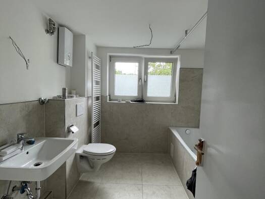 Die oben angegebene Wohnung befindet sich in dem 2023 neu errichteten 8-Familienhaus im beruhigten Bereich hinter den zur Straße liegenden Häusern mit den Hausnummern 87 + 89. Die Heizung und Warmwas...