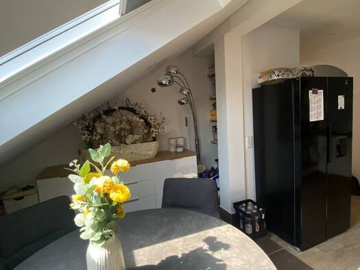 Vermietet wird: - helle Dachgeschosswohnung - Alle Dachfenster mit isolierenden Rollos - Klimaanlage - offener großer Wohn- Essbereich - Einbauküche mit Side by Side Kühlschrank (3 Jahre alt) - hochw...