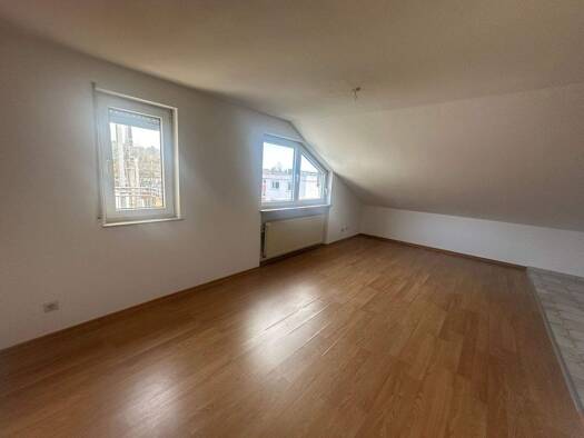Objektbeschreibung schöne, helle, bezugsfertige 3-ZKB-Wohnung im Dachgeschoss (3.OG) eines ruhigen 8-FH, wenig Schrägen Heizung (Fernwärme), Wasser und Strom werden separat direkt mit der KEW abgerec...