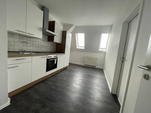 Die Wohnung befindet sich im Dachgeschoß eines 4-Familienhauses. Die Wohnräume sind alle vom zentralen Flur aus zu erreichen. Die Heizung erfolgt über eine eigene Gastherme. Über die Küche gelangt ma...