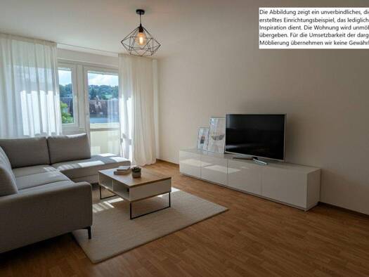 Die moderne Zweiraumwohnung im Dachgeschoss mit Balkon befindet sich in einem gepflegten Mehrfamilienhaus auf dem Land. Die Wohnung verfügt über eine offene Wohn-Küche und ein abgetrenntes Schlafzimm...