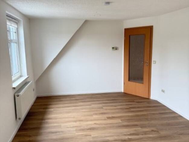 gemütliche 3-Zimmer-Wohnung unter dem Dach * freie Balken * Dachgaubenfenster * Laminat - und Fliesenböden * Wohnzimmer * offener Küchenbereich * Tageslichtbad mit Wanne * zwei weitere Raume als Schlafzimmer und/oder Kinder-/Arbeitszimmer vorhanden * separater Stellplatz dem dem Grundstück (25,00 €/Monat) * Bezug ab Juni 2026