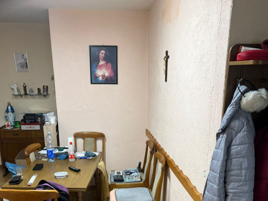 Es befinden sich neben dem Bad mit Dusche und WC ein Gäste WC sowie eine große Einbauküche mit Herd und Ceranfeld in der Wohngemeinschaft. Im Badezimmer gibt es zwei Waschbecken und eine große Dusche