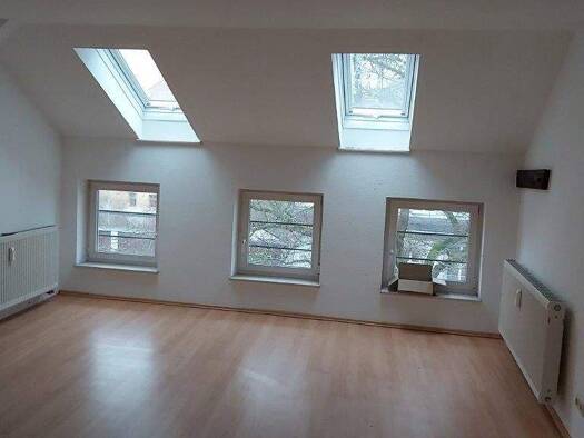 Objektbeschreibung Vermietet wird eine Dachgeschosswohnung in einem Mehrfamilienhaus. Die Wohnung ist mit einer Küche ausgestattet. Raumaufteilung Wohnzimmer mit Schrägen, kleines Schlafzimmer, Offen...