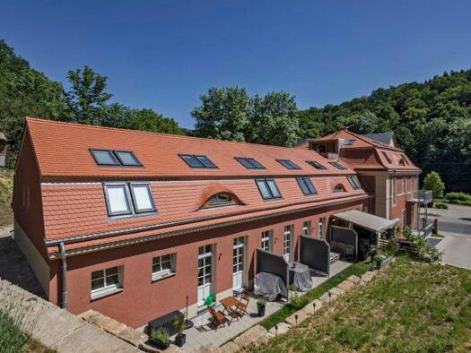 + sanierter Vierseitenhof (Altbau-Denkmalschutz) "Sächsischer Reiterhof" in Naußlitz mit dörflichem Flair + begrünter Innenhof mit Wasserspiel + Terrassen und Balkone teilweise in den Innenhof