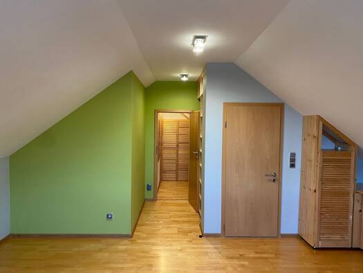 Durch den separaten Eingang auf der Nordseite des MFH betritt man die 4 1/2-Zimmer-Wohnung. In der 1. Wohnebene befinden sich das große Wohn-Esszimmer mit Zugang zum Balkon, die Küche mit EBK, ein Vo...
