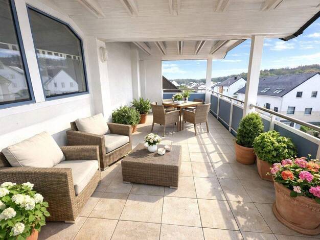 Schöne, helle Dachgeschosswohnung mit 3 Zimmern als Erstbezug: großes Schlafzimmer, Abstellkammer, großer u. offener Wohn-Essbereich, großes Bad und riesiger Balkon, der zum Entspannen einlädt. Der a...