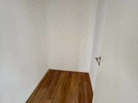 Ein großzügiger offener Flur bietet Platz für eine Garderobe und von hier sind das Duschbad sowie die beiden Schlafzimmer erreichbar. Folgt man dem Flur weiter, findet sich ein Abstellraum mit Waschm...