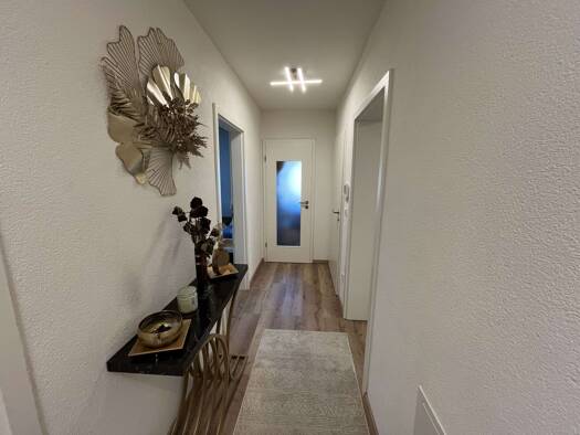 Objektbeschreibung Diese moderne und sehr gepflegte 3‑Zimmer‑Wohnung befindet sich im 1. Obergeschoss eines ruhigen Mehrfamilienhauses aus dem Jahr 1990 in bevorzugter Lage von Pforzheim‑Mäuerach. Auf ca. 71,25 m² Wohnfläche erwartet Sie ein durchdachter Grundriss mit hellen Räumen und einem zeitgemäßen Wohnkomfort. Der großzügige Wohn‑ und Essbereich bietet viel Licht und eine angenehme Wohnatmosphäre. Die offene, moderne Küche ist ein echtes Highlight und ideal für gemeinsames Kochen und gemü...