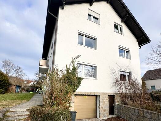 Zum 01.07.2026 können Sie diese helle, attraktive Wohnung im 1.OG beziehen. Die Wohnung besteht aus: Küche mit Einbauküche, Wohnzimmer mit West-Balkon, Schlafzimmer, Arbeitszimmer (Durchgangszimmer), Kinderzimmer sowie Bad mit WC und Dusche. Zur Wohnung gehört eine Garage. Ein geräumiger Kellerraum und ein Teil des Gartens kann mitbenutzt werden. Im Keller befindet sich ein Waschkeller mit Waschmaschinenanschluss zur gemeinsamen Nutzung. Das gesamte Haus - bestehend aus 2 Parteien - wurde 2022/...