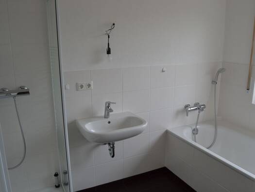 Allgemeine Beschreibung: Das Wohngebäude, Anfang der 60er Jahre fertiggestellt, wird in zweiter Generation instandgehalten und bei Bedarf renoviert. Sie werden im 2. Obergeschoß, in der sich die Dachwohnung befindet, ein angenehmes und gemütliches Zuhause finden. Ausstattung: In der Küche werden Sie eine fest installierte Einbauküche vorfinden, die von Ihnen genutzt werden kann. Im Bad finden Sie neben einer Duschwanne und Toilette das Waschbecken, sowie je eine Anschlussmöglichkeit für eine Wa...