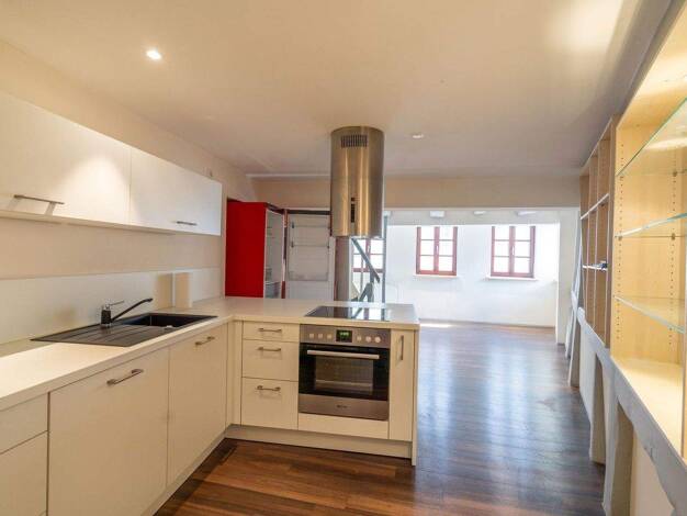 Die helle, lichtdurchflutete Wohnung befindet sich im 2. OG. Sie ist sehr geräumig und gleicht einer Oase. Ein Rückzugsort nach einem stressigen Tag. Die Dachterrasse ist süd-östlich ausgerichtet und liegt ruhig und geschützt. Eine maßgeschneiderte neue Wohnküche mit Elektrogeräten lässt keine Koch- Backwünsche offen. Ein Kühlschrank ist aus hygienischen Gründen nicht berücksichtigt, dafür muss selbst gesorgt werden.