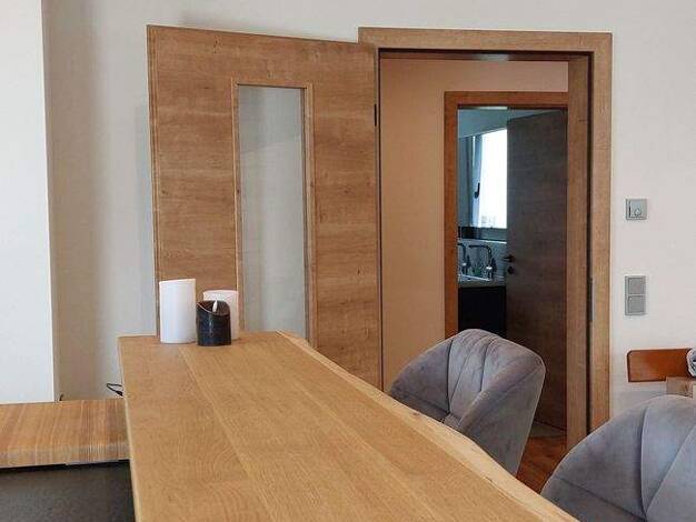 Luxuswohnen auf dem Land ist angesagt. Hier ist alles vom Feinsten - und das auch noch in groß! Die Südterrasse erwartet Sie für diesen Sommer im wohlgestylten und technische durchdachten 2 Parteienhaus. Durch die Wohnungstür gehend erreiche Sie rechter Hand die geräumige Wohnküche mit kleiner Speisekammer und Zugang zur Terrasse. Durch eine zweiflügige Schiebetür ist das Wohnzimmer abtrennbar. Luxus erwartet Sie im Badezimmer und im großen Schlafzimmer.