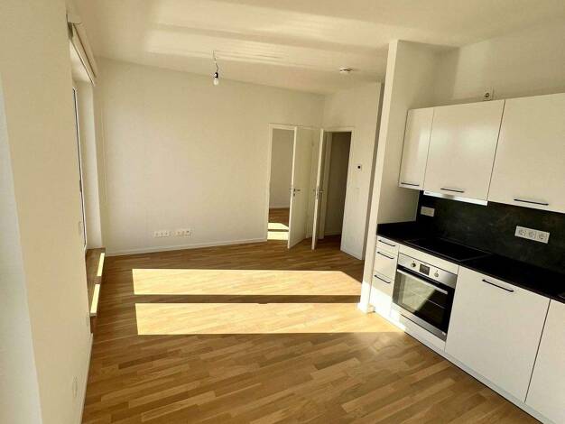 Drei helle Zimmer mit großzügiger Deckenhöhe und bodentiefen Fenstern schaff en ein luftiges, modernes Wohngefühl. Küche und Tageslichtbad bieten stilvollen Komfort, während 2 Balkone, Fußbodenheizun...