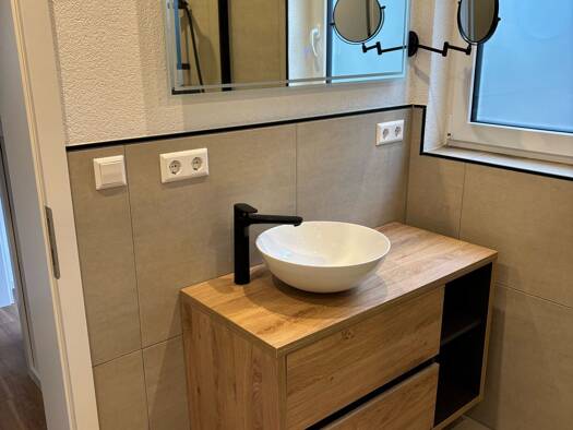 Verfügbar: zeitnah, nach Absprache. Die Wohnung wird aktuell noch bewohnt. Diese moderne 2-Zimmer Wohnung verfügt über alle essentiellen Möbel. Sie ist optimal für 1-2 Personen und wird inkl. eines Stellplatzes vermietet (mit Platz für 2 Autos). Die Wohnung befindet sich im Erdgeschoss, im Anbau eines Mehrfamilienhauses, hat einen separaten Eingang und wurde 2022 vollständig saniert. Ausstattung: moderne Einbauküche Geschirrspüler Mikrowelle Waschtrockner Lage: Die Wohnung befindet sich zentral...