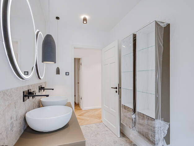 Diese exklusive Wohnung ist wohl einzigartig in Bremen. Sie erstreckt sich mit rund 210 m² Wohnfläche über die 5. und 6. Etage des Hauses. Selbstverständlich ist die Erreichbarkeit bequem mit dem Fahrstuhl gewährleistet. Durch einen umfangreichen Ausbau mit stilsicher ausgesuchten Materialien und einer Luxus-Ausstattung, die keine Wünsche offen lässt, präsentiert sich diese großzügige Wohnung verbunden mit einem eigenen Spa-Bereich zu dem eine große Sauna, ein Whirlpool, eine Dusche, Platz für ...