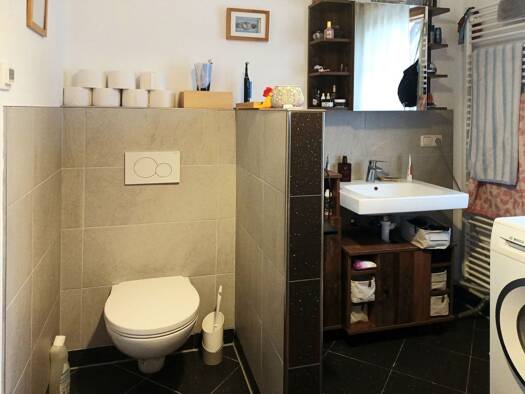 Vermietet wird ein 18,5 qm großes Zimmer in einer 4-Zimmer-Wohnung. Dazu gehören großzügige 41 qm Diele, Garderobe, Küche, Bad, Vorrats-/Abstellraum in Mitbenutzung. Bad, neu (Dez. 2025) mit moderner Ausstattung, voll gefliest: Bodengleiche Dusche, WC, Waschtisch, Waschmaschinenanschluss. Küche mit Einbauschränken, Ceran-Kochfeld, Dunstabzugshaube, Backofen mit Mikrowelle, Kühl-/Gefrierkombi, Geschirrspüler und Sitzbereich für 4 Personen. Große Diele mit Aufenthaltsbereich. Bezugsfertig sofort....