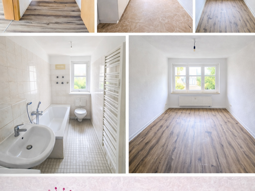 Diese 3-Raum-Wohnung im 1. Obergeschoss rechts wurde 2014 saniert. Das Wohnzimmer und das Schlafzimmer sind mit hellem Laminat ausgestattet. Die Küche und das Bad verfügen über anthrazitfarbene Boden...