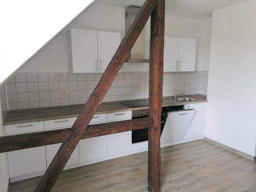 Wir sanieren für Sie unser Haus. Diese hübsche 7-Raum-Dachgeschoss-Wohnung bietet Ihnen alles, was man für tolle Familienwohnung benötigt. Der Wohnraum ist mit hellem Laminat ausgestattet. Der Küchenbereich ist gefließt. Die beiden Badezimmer bieten Platz für eine Dusche / Badewanne und die Waschmaschine. Die Wohnung ist mit wunderbaren Balken versehen, die die Räume noch gemütlicher wirken lassen. Von der Küche aus gelangt man auf den sonnigen Balkon. Lassen Sie sich von den Bildern überzeugen...