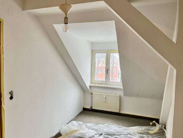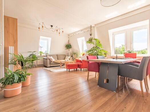 Diese attraktive 2-Zimmer-Wohnung befindet sich im Dachgeschoss einer liebevoll sanierten Stadtvilla in Dresden-Plauen und überzeugt durch ihre ruhige Lage sowie ihren besonderen Wohncharakter. Der Wohnungseingang liegt im 2. Obergeschoss und führt über einen kleinen Flur mit Treppe in den eigentlichen Wohnbereich im 3. Obergeschoss. Hier erwarten Sie großzügig geschnittene und individuell gestaltete Wohn- und Schlafräume, die durch Dachflächenfenster und sichtbare Holzbalken eine ganz besonder...