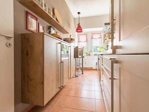 Die Wohnung befindet sich in einem sanierten denkmalgeschützten Mehrfamilienhaus im 1.OG. Sie ist mit Parkettboden und einer Einbauküche ausgestattet und hat vom Balkon aus einen schönen Fernblick. Ein Stellplatz kann optional angemietet werden.