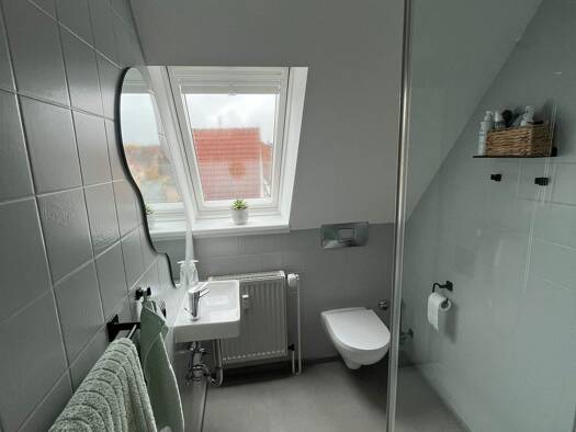 Diese frisch renovierte Wohnung befindet sich im 1. OG und DG eines 2-Familienhauses. Es zeichnet sich durch eine gehobene Innenausstattung aus und kann ab dem 1.10.2025 bezogen werden. Die Wohnung b...