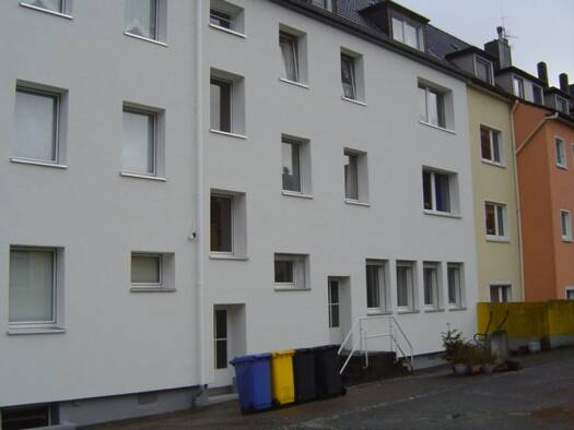 Ruhiges Mehrfamilienhaus, Essen-Frohnhausen, Rankestr. 4-6 Die Wohnung liegt im 2 OG. Zentrale und verkehrsgünstige Lage, jedoch in ruhiger Seitenstraße (Nähe Bahnhof Essen-West - 5 Fußminuten und von hieraus alle 7 Minuten zum Essener HBF / Richtung Mülheim oder zur A 40 - 4 Autominuten) Beste Verkehrsanbindung und alle Schul- und Einkaufsmöglichkeiten. Raumaufteilung + Zustand 1 Zimmer als Wohn-Schlafraum mit neuwertigem Laminatboden, 1 Küche mit neuwertigem Boden, neuwertiger Einbauküche, 1 ...