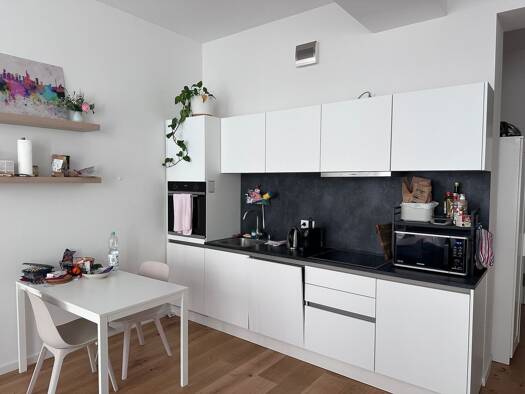 Die helle ca. 60 m² große 2 Zi.-Wohnung befindet sich im ersten Obergeschoss eines 2020 fertiggestellten Mehrfamilienhauses, das energetisch gemäß KfW-55-Standard erstellt wurde. Der Küchenbereich is...