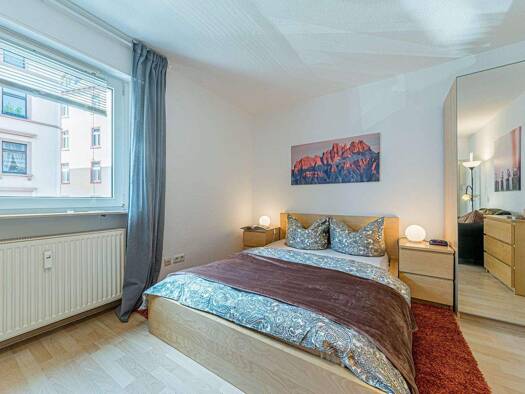 Bitte beachten Sie: Die Wohnung ist komplett möbliert und ausgestattet. Die Gesamtmiete beinhaltet die Nebenkosten. Gesamtmiete 1020,- Eur inklusive Nebenkosten * Laufnähe zum Main * Waschmaschine und Trockner im Haus * Ruhige Lage in beliebtem Stadtviertel Saniertes Apartmenthaus (), Bj. 1966, 2. Etage, kein Lift * Wohnräume: Heller Wohn-/Schlafraum mit Doppelbett (140cm breit) * Bad: Hell gefliestes Tageslichtbad mit Dusche -