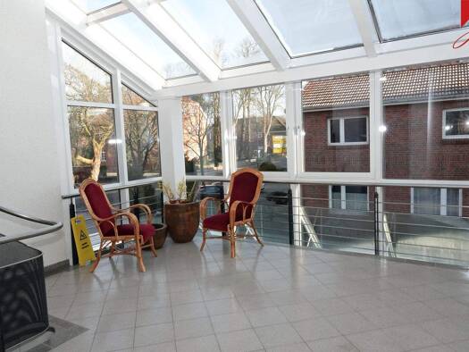 Gemütliche Obergeschosswohnung in ruhiger Seniorenresidenz in unmittelbarer Nähe zur Auricher Innenstadt! Die Wohnung befindet sich im Obergeschoss eines sehr gepflegten Mehrfamilienhauses und ist bequem über einen Fahrstuhl zu erreichen. Der Grundriss teilt sich auf in: einen Wohnungseingangsbereich, eine offene Küche mit Einbauküche und Essbereich mit Zugang zum Balkon, einem Wohnzimmer mit Zugang zum zweiten Balkon, einem Schlafzimmer, einem innenliegenden Duschbad mit Waschmaschinenanschlus...
